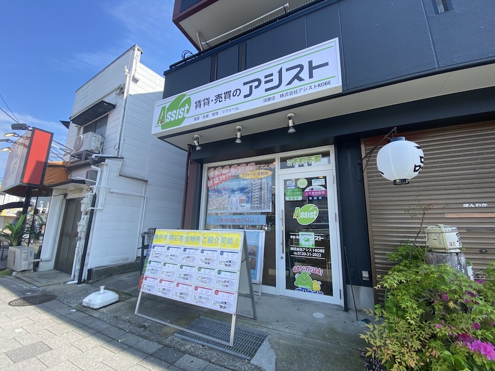 「板宿駅」から徒歩1分の「賃貸・売買のアシスト板宿店」は神戸市垂水区周辺の物件を多数取り扱っている不動産屋です。