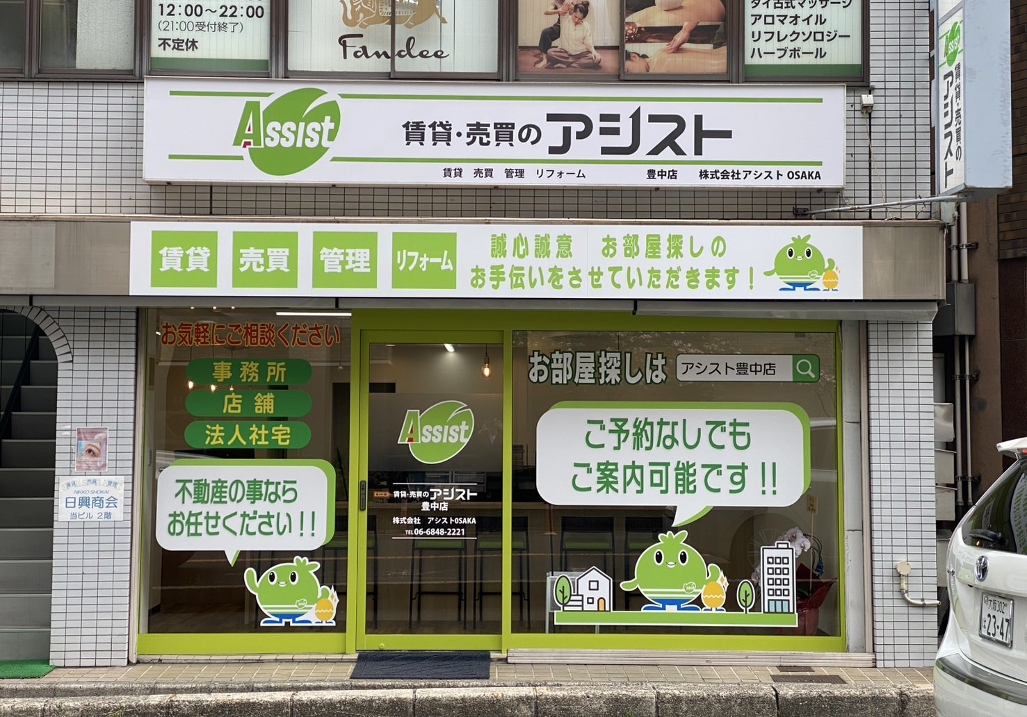 豊中駅周辺には不動産屋が多いですが、特におすすめなのは『賃貸・売買のアシスト・豊中店』です。